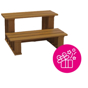 Kényelmes ki- és beszállást biztosít a VitalSpa masszázsmedence külső fa burkolatával harmonizáló fa lépcső. A Thermowood fa lépcső időjárásálló, valamint víz hatására sem dagad meg, vagy válik csúszóssá. (Ajándék a Bermuda jakuzzihoz).